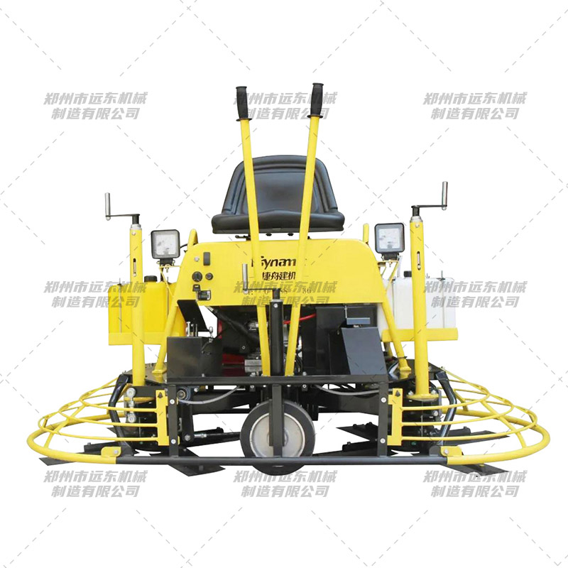 适合大小施工场地,可进行室内室外抹平操作。适用于高标准厂房、仓库、广场、机场、停车场、路面、路桥养护、混凝土表面的提浆、抹平、是混凝土施工中重要设备之一。 驾驶型混凝土地面汽油抹光机的使用很大程度上降低了劳动强度,提高了工作效率,具有双盘,重量大,对地面具有较好的压实效果,施工效果明显高于其它施工机器,可同时安装两张提浆圆盘,进行快速提浆,机械式转向操作系统,反应灵敏,控制轻松自如。