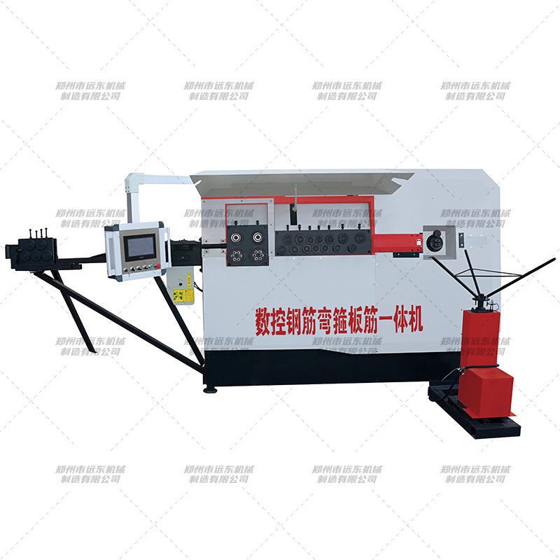 该机适用于钢筋配送中心、建筑工程场地、PC工厂、高铁、高速、核电、民建等建设域。可加工到16mm的盘条钢筋,既可以加工箍筋,又可以自动加工各种长板筋,伺服驱动的回送弯曲可以自动设置弯曲各种长度和角度的板筋钩,大型伸缩式接料机构设计,加工范围大,具有防扭转矫正机构,了成品的精度和平整度。一机多能,大量应用于钢筋加工配送工厂。全数控自动加工各种箍筋、长板筋的多功能弯箍机,板筋、箍筋功能切换在2秒内数控自动智能切换,不需任何人工调整。大型结构设计,加工范围大,加工板筋钩的宽度可达1米,板筋长度达到12m;箍筋边长达到2350mm。 1、圆盘式两级伸缩弯曲机构,回送弯曲效率高,工作稳定。 2、伸缩式接料机构,避免钢筋窜出,工作可靠,噪音小。 3、翻板式两级接料,方便成品收集整理。 4、具有扭转矫正机构,可成品板筋的平直度。 5、四轮式伺服驱动回送机构设计,实现多步回送弯曲,回送达到±1mm。